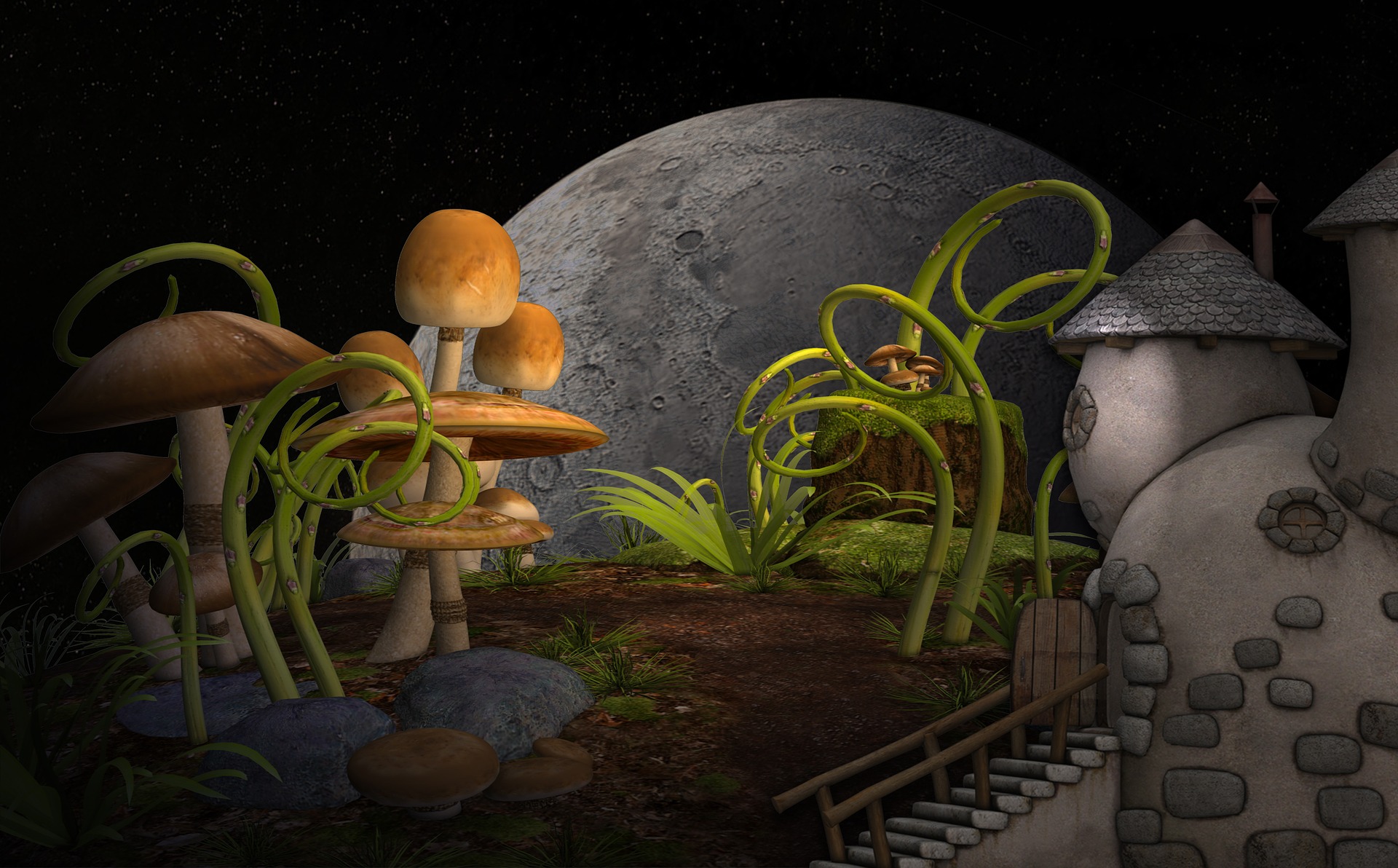 버스가 다니는 도로부근의 가옥들이 밀집되어 있는 주택가에서 100여 미터 정도 약간 경사진 길을 올라가면서 집들이 드문드문해 진다. 그 부근에 있는 서너 채의 집에는 창문에 불빛이 비치고 있는데 한 곳의 집은 불빛 한 점 없는 가운데 비의 장막 속에 희끄무레하게 서 있다. 마치 유령의 집처럼…….