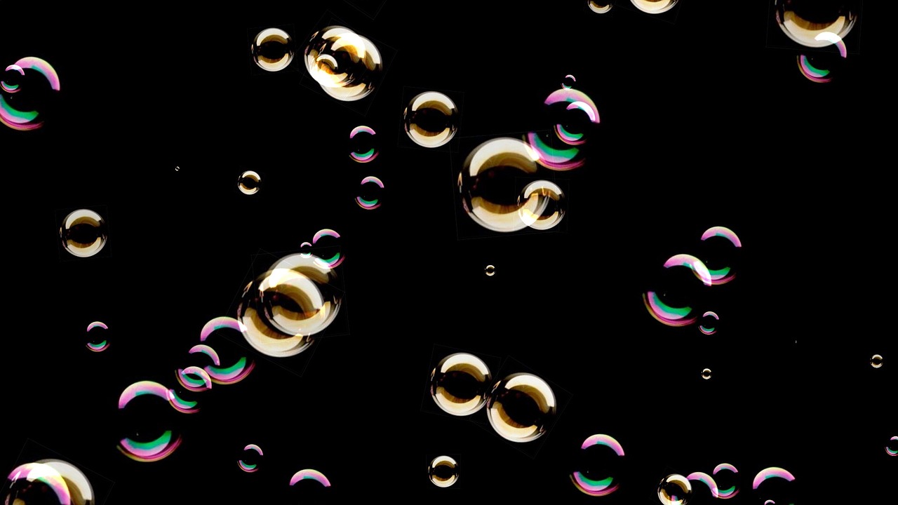 그 때 두 사람 위로 둥실 떠오고 있는 커다란 비눗방울들.